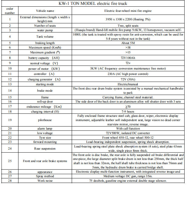 KW-1 tonn Model Electric tuletõrjeautoSee on oluline täiendus traditsioonilisele tulekaitsesüsteemile, mis sobib eriti esialgseks tuletõrjeks, kitsaks keskkonnaks ja igapäevaseks ennetamiseks. See on keskkonnasõbralik, ökonoomne ja praktiline ning sobib reklaamiks kogukondades, maalilistes kohtades, tööstusparkides ja muudes stsenaariumides.