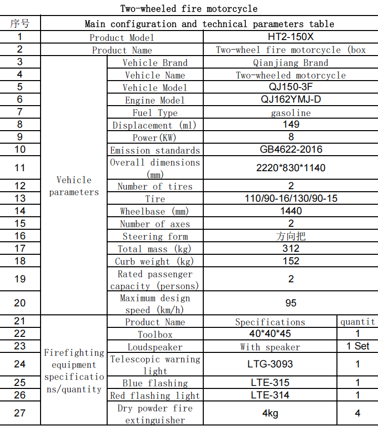 All-maastiku tuletõrje mootorrattal on suurepärased maastikul jõud. See võib kiiresti ja paindlikult läbi viia tuletõrje ja päästa karmidel mägiteedel või kitsastel tänavatel. Äkilise tuleohu korral võib see viia 3 inimest, et moodustada lahingumeeskond tulekahju allika kustutamiseks.