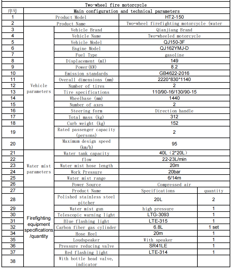 Sõiduki kere on väike (tavaliselt umbes 2 meetrit pikk ja umbes 0,8 meetrit lai) ning võib hõlpsalt sirutada läbi kitsaste tänavate, vanalinna piirkondade, jalakäijate tänavate, maaliliste mägiteede, linnakülade ja muude piirkondade, kuhu suured tuletõrjeautod ei jõua, alleede kaudu hõlpsalt sirutada, lahendades tuletõrjekaitseprobleemid "viimases miilil".